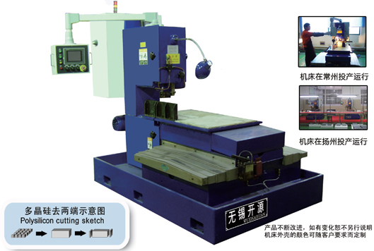 1、本机床为多晶硅坯料切割专用设备,适用于多晶硅坯料的锯段,广泛应用于太阳能电力和半导体工业等行业。